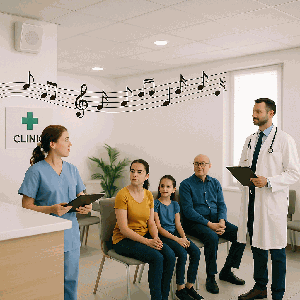 Müzik, “özenli, modern, güvenilir” bir klinik izlenimi yaratır.